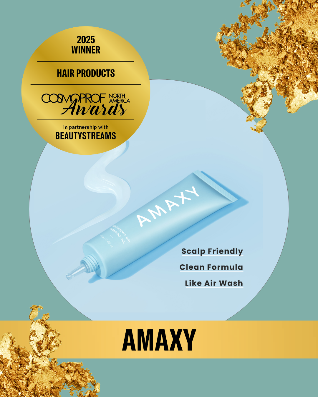 Born from the need for a cleaner, smarter alternative to traditional dry shampoos, AMAXY’s Volumizing Dry Shampoo Gel redefines scalp refreshment. Concept-tested with Gen Z and eco-conscious consumers, this non-aerosol, non-powder formula eliminates oil and odor without residue or buildup. TSA-friendly and styled like a skincare gel, it delivers 12-hour freshness and touchable volume—perfect for busy, ingredient-aware lifestyles.